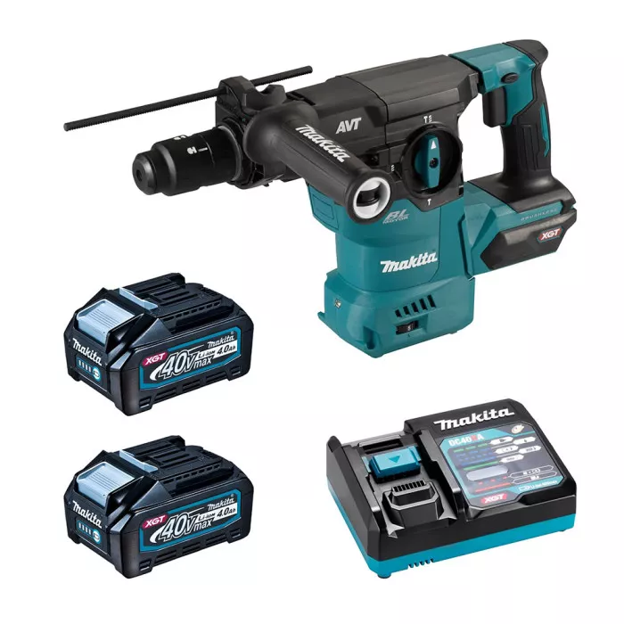 Makita HR009G относится к тяжелому классу аккумуляторных перфораторов SDS-Max и предназначен для бурения, долбления и демонтажных работ по бетону и камню. Инструмент оснащён бесщеточным двигателем и работает от аккумуляторов XGT 40V Max, обеспечивая стабильную мощность без подключения к электросети.