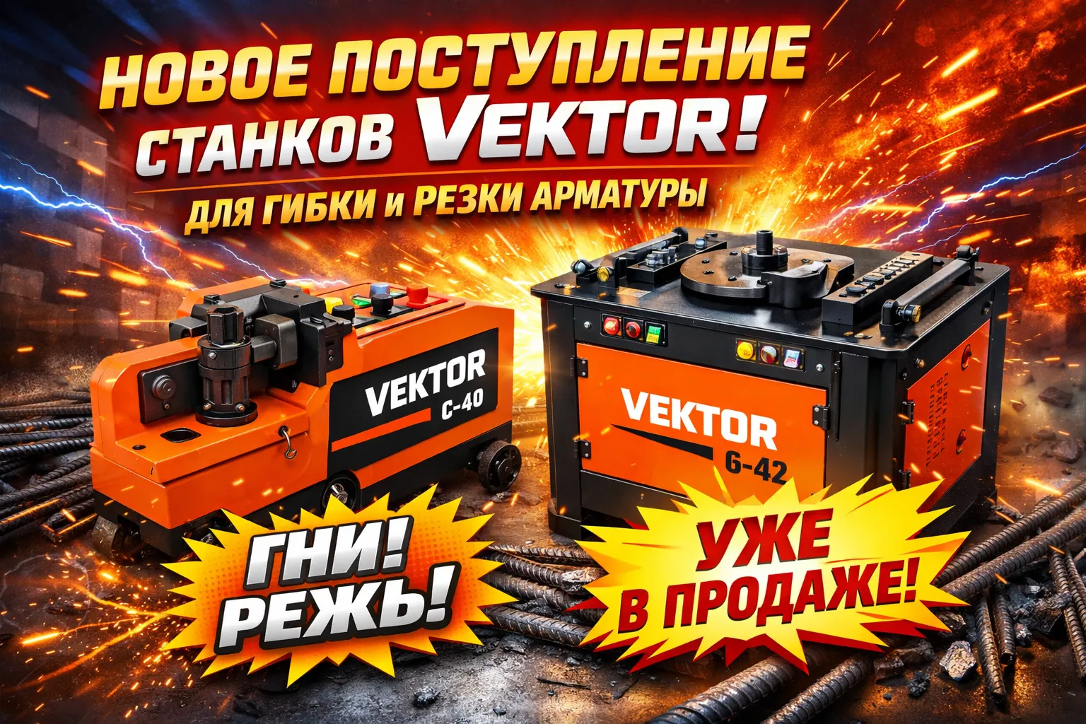 Рады сообщить о расширении ассортимента оборудования для арматурных работ. В наличии на складе в Москве — новые модели станков Vektor, а также расходные части к ним.